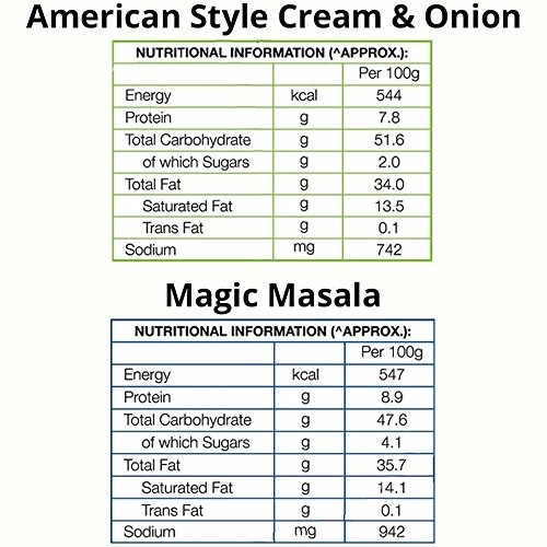 • Includes one pack of Lays Potato Chips in American Style Cream & Onion flavor (177g) and one pack of Lays Potato Chips in India’s Magic Masala flavor (177g).