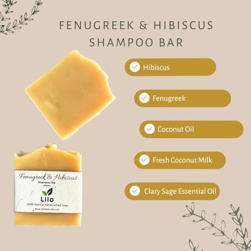 Lilo’s Fenugreek & Hibiscus Shampoo Bar | For Damaged & Dry Hairs | Hibiscus | Fenugreek | Cocoa Butter |Coconut Milk | Almond Oil | Virgin Olive Oil |Cold Pressed Coconut Oil | Clary Sage (Pack of 2) – Fast Shipping to USA & Canada