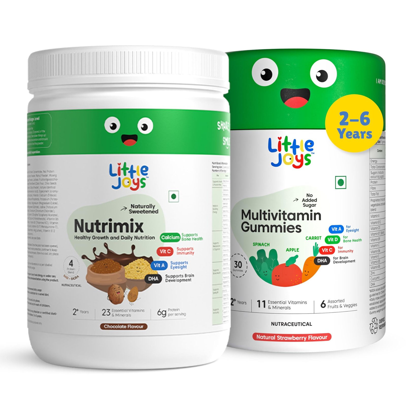 • SAVORY & NATURALLY SWEET: Savor the delightful Little Joys Nutrimix, sweetened with dates and jaggery, alongside the flavorful strawberry-infused Little Joys Multivitamin Gummies, transforming the intake of essential nutrients into a delightful experience. SAFE & GLUTEN-FREE: Both the Little Joys Nutrimix and Little Joys Multivitamin Gummies are gluten-free and devoid of artificial preservatives, making them a wholesome option for children aged 2 and older.