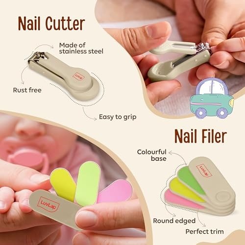 - Our 7-in-1 baby grooming kit has everything you need for your little one?s daily care, including a baby nail cutter, rounded safety nail scissors, nail file, brush, and comb. It?s designed to make grooming safe, easy, and convenient for both you and your baby.