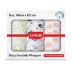 At LuvLap, your baby?s comfort and happiness are our top priorities. Our Baby Swaddles are designed to give your newborn that snug, cozy, womb-like feeling they love. Made from premium cotton muslin, these swaddles are breathable, prewashed, and incredibly soft-and they get even softer with every wash. They?re completely free from harmful chemicals, making them safe and gentle for your baby?s delicate skin. Lightweight and perfectly sized for swaddling, they?re also versatile enough to use as a burp cloth, towel, stroller cover, play mat, nursing cover, and more.
