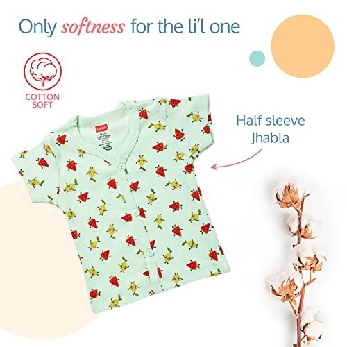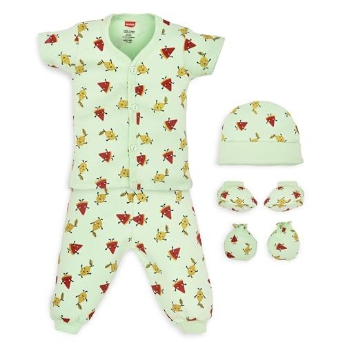 - Perfect for newborns aged 0-3 months, this complete baby outfit includes five must-have pieces: a half-sleeve jhabla vest, pajama trousers, a cozy cap, soft mittens, and matching socks.
