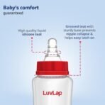 LuvLap Essential Feeding Bottles are thoughtfully designed to fit comfortably in your hand, making feeding time easier for both you and your baby. Made from 100% BPA-free materials, these bottles are safe and can be fully sterilized for your peace of mind. The teats are crafted from pure liquid silicone and feature an anti-colic valve that allows air to flow back into the bottle, helping to prevent your baby from swallowing air and reducing the risk of colic. The spiral grooves at the tip of the teat encourage natural suckling and help your baby latch on comfortably. Thanks to the high-quality silicone and grooved design, the teats resist collapsing, ensuring a smooth and uninterrupted feeding experience. With LuvLap Essential Feeding Bottles, you can feel confident that every feed will be comfortable and safe for your little one.