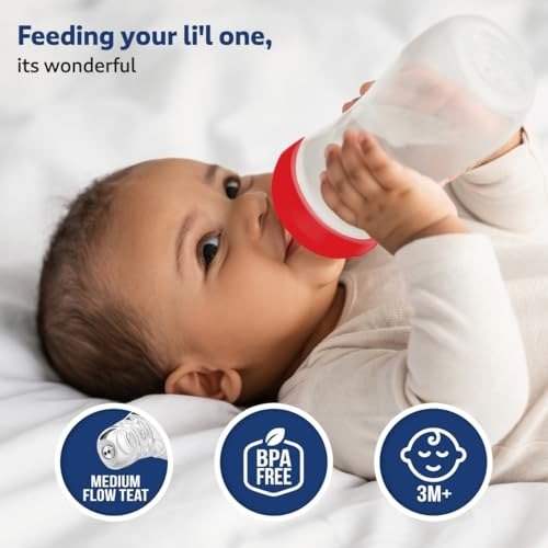 LuvLap Essential Feeding Bottles are thoughtfully designed to fit comfortably in your hand, making feeding time easier for both you and your baby. Made from 100% BPA-free materials, these bottles are safe and can be fully sterilized for your peace of mind. The teats are crafted from pure liquid silicone and feature an anti-colic valve that allows air to flow back into the bottle, helping to prevent your baby from swallowing air and reducing the risk of colic. The spiral grooves at the tip of the teat encourage natural suckling and help your baby latch on comfortably. Thanks to the high-quality silicone and grooved design, the teats resist collapsing, ensuring a smooth and uninterrupted feeding experience. With LuvLap Essential Feeding Bottles, you can feel confident that every feed will be comfortable and safe for your little one.