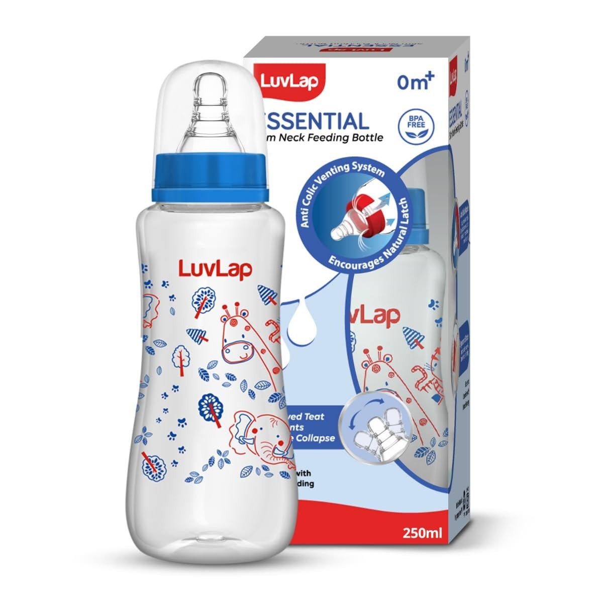 LuvLap Slim Neck Feeding Bottle 250ml, Jungle Tales, Blue – Fast Shipping to USA & Canada