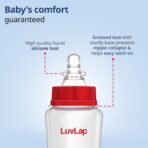 LuvLap Essential Feeding Bottles are thoughtfully designed to fit comfortably in your hand, making feeding time easier for both you and your baby. Made from 100% BPA-free materials, these bottles are safe and can be fully sterilized for your peace of mind. The teats are crafted from pure liquid silicone and feature an anti-colic valve that allows air to flow into the bottle instead of your baby?s tummy, helping to reduce discomfort. Spiral grooves at the tip of the teat encourage natural suckling and help your baby latch on easily. Thanks to the high-quality silicone and grooved design, the teats resist collapsing, so your baby can enjoy a smooth, uninterrupted feed every time. With LuvLap Essential Feeding Bottles, you can be sure your baby?s feeding experience will always be comfortable and worry-free.