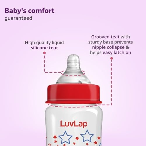 LuvLap Natura Flow Feeding Bottles are designed with an ergonomic shape, making them comfortable and easy to hold while feeding your baby. All LuvLap bottles are made from 100% BPA-free materials and can be fully sterilized for your peace of mind. The teats are crafted from 100% liquid silicone and feature an anti-colic valve that allows air to flow into the bottle instead of your baby?s tummy, helping to reduce discomfort. The teat?s grooved tip encourages natural suckling, while the wide base helps your baby latch on just like they would during breastfeeding, making it easier to switch between breast and bottle. Thanks to the high-quality silicone and grooved design, the teats resist collapsing, ensuring your baby enjoys a smooth, uninterrupted feeding experience.