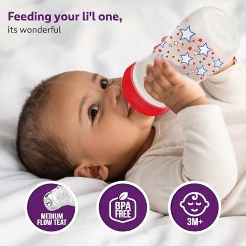 LuvLap Wide Neck Feeding Bottle 150ml, Stars – Fast Shipping to USA & Canada