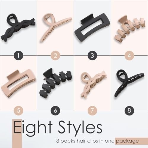 Lyrovo 8Pcs Hair Clips Clutchers for Women Ponytail Claw Clip for Thin Thick Curly Hair Holder Accessories (Peach and Black, 8pcs) – Fast Shipping to USA & Canada