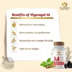 - ENHANCES MENTAL WELL-BEING: Vigoroyal M Tablets tackle issues such as stress and anxiety, which can adversely affect mental health. Ashwagandha, an adaptogenic herb, is recognized for its ability to assist the body in managing stress by balancing cortisol levels. Additionally, it contributes to improved overall mental wellness and fosters a more optimistic mood.