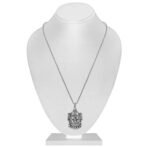 Box Includes: 1 Pendant with Chain; Finish: Antique Rhodium Plating; Material: Alloy; Dimensions: Pendant – 4cm x 2.5cm; Chain Length – 18 Inches