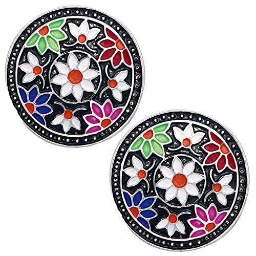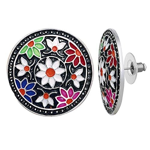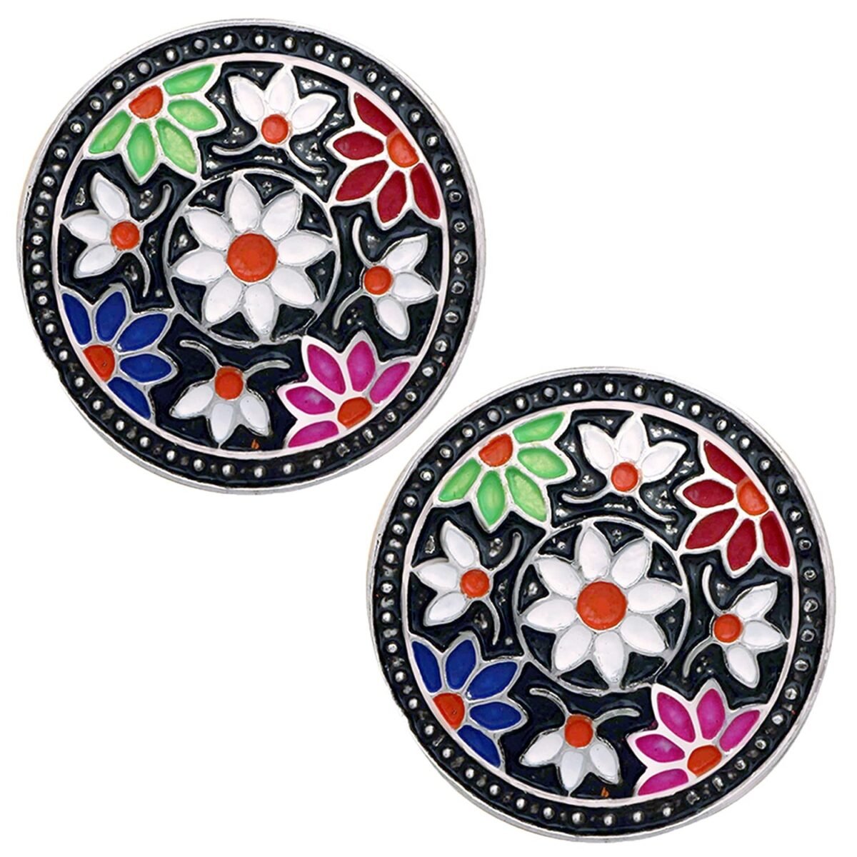 7 reviews for Mahi Black Meenakari Work Enamelled Floral Design Round Shaped Stud Earrings for Women (ER1109723R) – Fast Shipping to USA & Canada