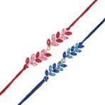 Mahi Combo of 2 Leaf Shaped Beautiful Rakhis with Red Pink and Blue Coloured Crystals for Bhai (RCO1105531M) – Fast Shipping to USA & Canada