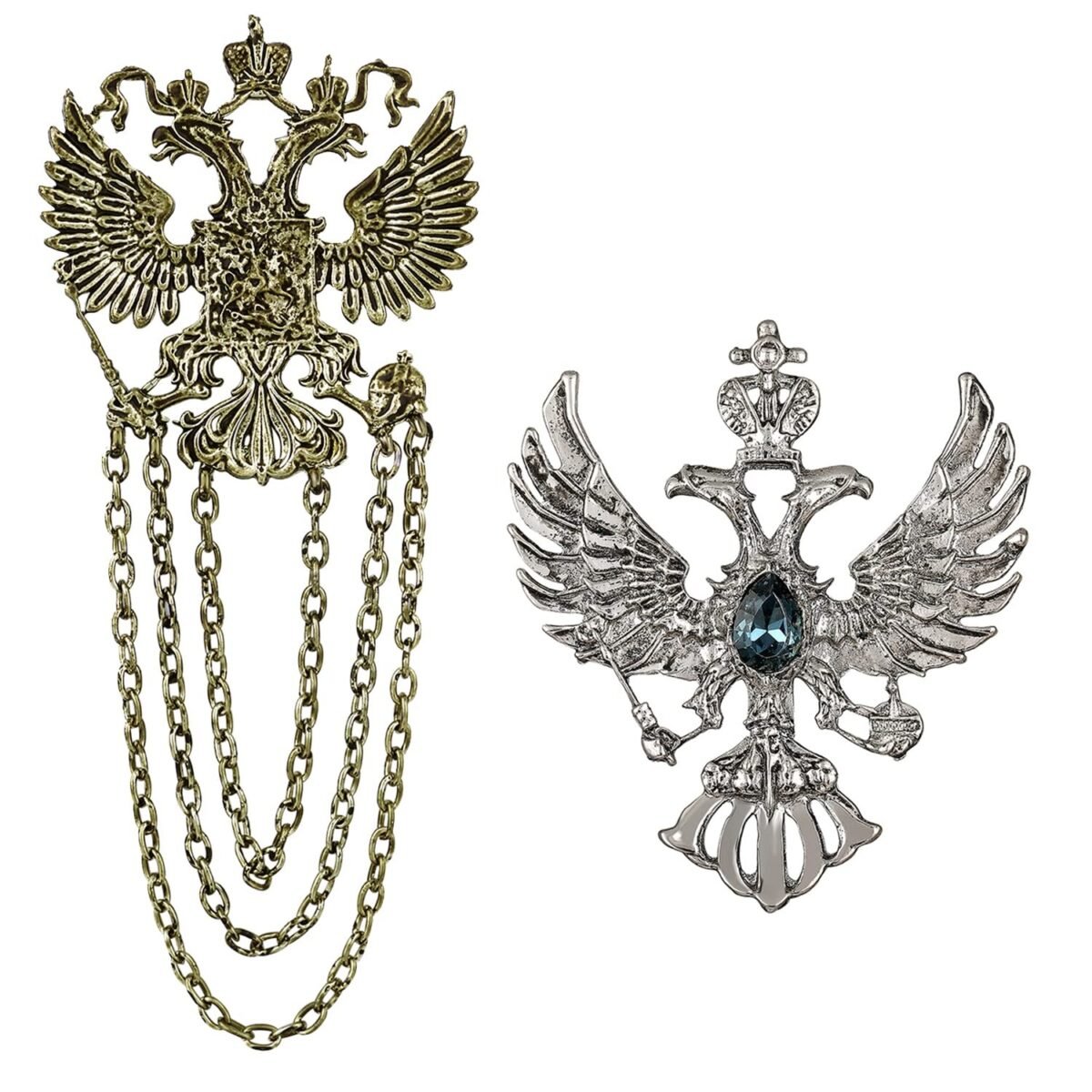 • Set of Dual-Headed Flying Eagle-Shaped Layered Chain Lapel Pins / Brooches