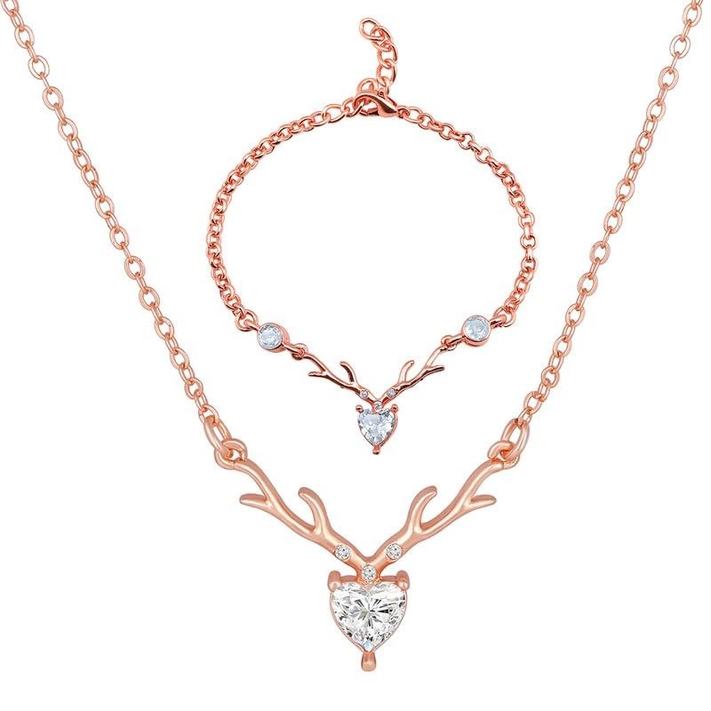 - A captivating set featuring a heart and deer-shaped pendant along with a matching bracelet.
