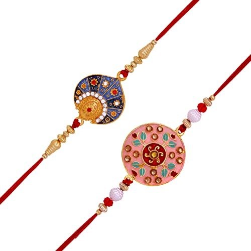 Mahi Combo of Meenakari Work Rakhi’s with Multicolor Crystal and Artificial Pearl for Brother (RCO1105219M) For Men – Fast Shipping to USA & Canada