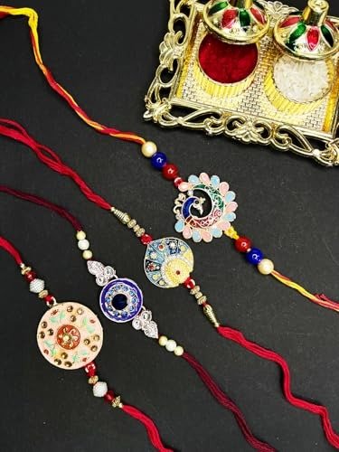- Set of Exclusive Designer Meenakari Work Rakhis