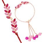 - Light and Dark Pink Leaf-Shaped Bhaiya Bhabhi Rakhi