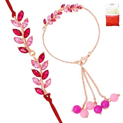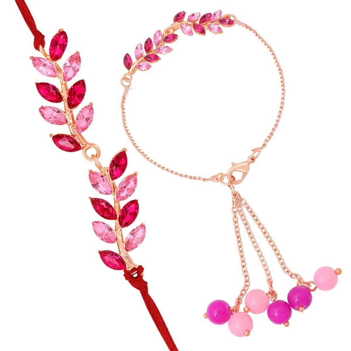- Light and Dark Pink Leaf-Shaped Bhaiya Bhabhi Rakhi