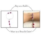 - The Rakhi is embellished with vivid hues and eye-catching decorations that enhance the elegance of the festivities. Versatile Functionality: The Lumba Rakhi can serve as a bracelet or a decorative piece for a range of festive events and celebrations.