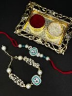 7 reviews for Mahi Gold Plated Classic Kundan and Artificial Pearl Studded Ethnic Couple Rakhi Set for Bhaiya and Bhabhi (PARCOL1105728PR) – Fast Shipping to USA & Canada