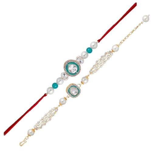 Mahi Gold Plated Classic Kundan and Artificial Pearl Studded Ethnic Couple Rakhi Set for Bhaiya and Bhabhi (PARCOL1105728PR) – Fast Shipping to USA & Canada