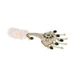 Finish: Gold Plated; Material: Alloy; Gemstones: Crystals; Stone Colors: Green and White; Dimensions: Kalangi – 12cm x 9.5cm; Feather – 14cm x 5cm.