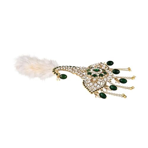 Mahi Green and White Crystals Kalangi with Feather Pagri Turban Brooch for Groom/Men (KL1001019GGre) – Fast Shipping to USA & Canada
