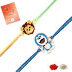 Spread happiness and delight to your younger brother this Raksha Bandhan with this charming Cartoon Rakhi Combo Set of 2, crafted especially for children! Showcasing playful and vibrant enamel charms, this set comprises: