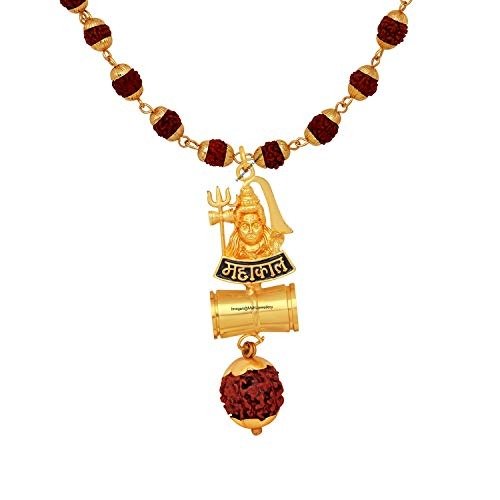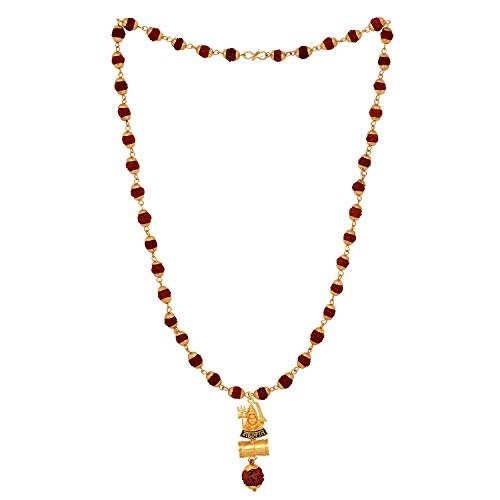 Plating: Gold Plated; Material: Alloy; Pendant Dimensions: 6cm x 2cm; 24-Inch Rudraksha Mala