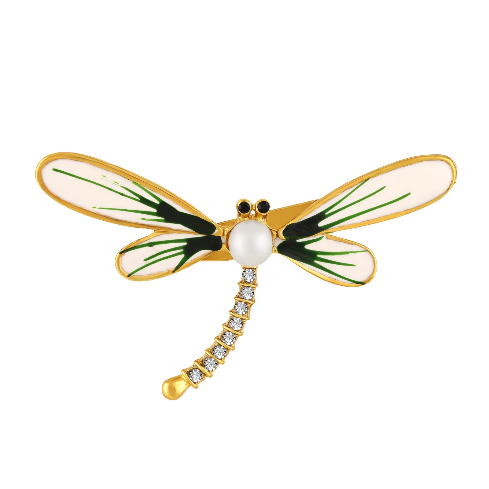Mahi Meenakari Enamel Dragonfly-Shaped Saree Pin/Wedding Brooch with Crystal and Artificial Pearl for Women (BP1101202GWhi) – Fast Shipping to USA & Canada