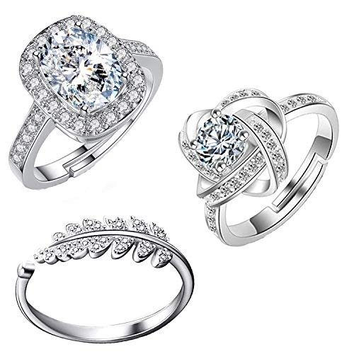 Mahi Non Precious Metal 3 Pcs Combo of Stylish and Designer White Stones Adjustable Finger Rings for Women (CO1105158R) – Fast Shipping to USA & Canada