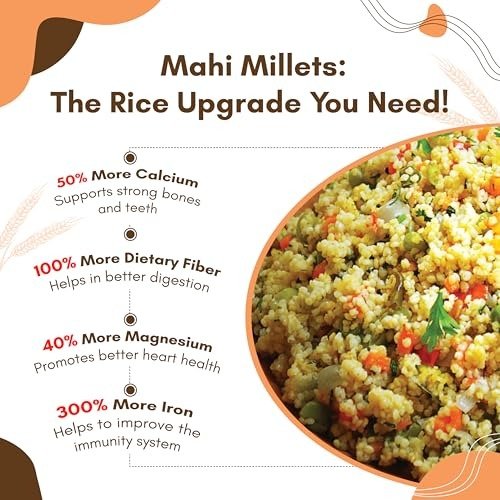- Mahi Organix Millets boast 20% higher protein content, 300% greater iron levels, and 600% increased folate compared to white rice. Additionally, they serve as an excellent source of iron, magnesium, phosphorus, vitamin B6, and vitamin E.