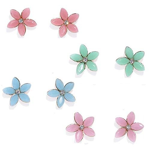 Mahi Rhodium Plated Floral Meenakari Stud Earrings combo for girls and women CO1104927R – Fast Shipping to USA & Canada