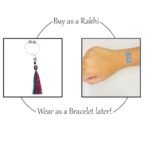 - The Rakhi is embellished with vivid hues and eye-catching decorations that enhance the elegance of the festivities. Versatile Functionality: The Lumba Rakhi can serve as a bracelet or a decorative piece for a range of festive events and celebrations.