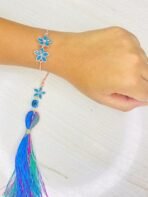 7 reviews for Mahi Rose Gold Plated Blue Crystals Floral with Evil Eye Lumba Rakhi for Bhabhi (RAL1100807ZBlu) – Fast Shipping to USA & Canada