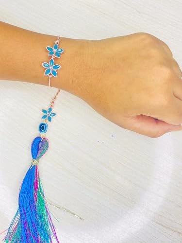 Mahi Rose Gold Plated Blue Crystals Floral with Evil Eye Lumba Rakhi for Bhabhi (RAL1100807ZBlu) – Fast Shipping to USA & Canada