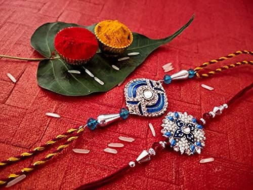 7 reviews for Mahi Silver Alloy Ethereal Meenakari Work 2 Rakhis Bracelet Combo for Boys – Fast Shipping to USA & Canada