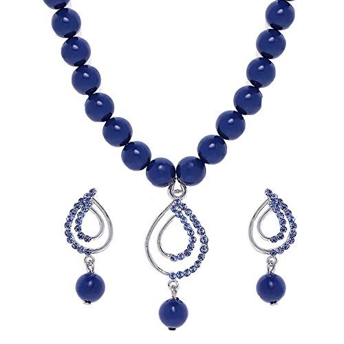 Mahi Valentine Gift Blue Crystals and Artificial Pearls Paisley Necklace Set for Women (NL1103769RBlu) – Fast Shipping to USA & Canada