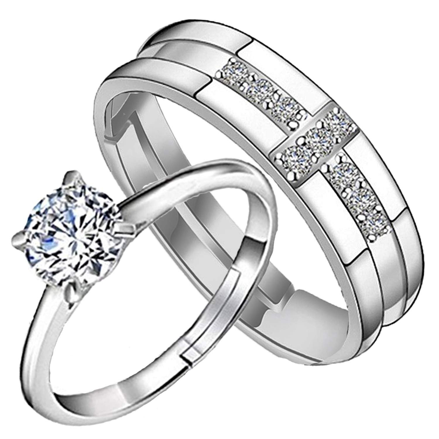 These elegant and sparkling lovers rings princess crown and cross rings are beautifully crafted The rings are featured with white cubic zirconia stones in a pave setting The ring will be perfect for gift giving The item is perfect for wedding engagement anniversary valentines day birthday etc List price is for both rings All products from Mahi Jewelry come in a good quality jewellery box The size of the rings is adjustable.