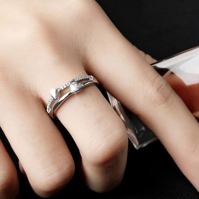 7 reviews for Mahi Valentine Gift Proposal Dual Heart Adjustable Finger Ring with Crystal for Women (FR1103197R) – Fast Shipping to USA & Canada