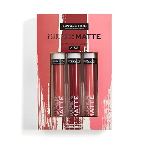 Looking for a lipstick that?s rich, nourishing, and leaves your lips with a silky-smooth finish? Look no further. The Revolution Relove Supermatte Liquid Lip Set Kiss comes in three gorgeous shades, so you can find the perfect color for any mood. Want to feel powerful and seductive? Try the Relove Baby Lipstick-its vibrant, classic red is perfect for making a statement.