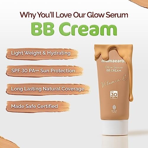 Mamaearth Glow Serum BB Cream with Vitamin C & Turmeric – 25 g | Long Lasting Natural Coverage | SPF 30 PA++ Sun Protection| Lightweight & Hydrating – Fast Shipping to USA & Canada