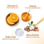 - ASSISTS IN BRIGHTENING & SHIELDING LIPS Envision your ideal lips – Smooth, Shielded & Luminous! This lip balm, enriched with Vitamin C and Kojic Acid, diminishes pigmentation and enhances the brightness of dark lips, while SPF 50 ensures sun protection.