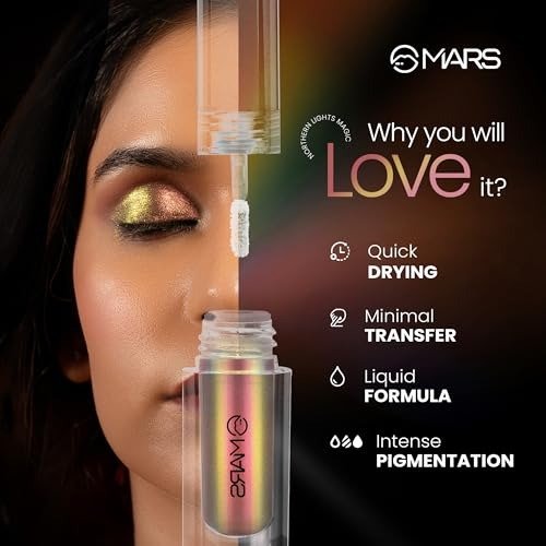 10 reviews for MARS Northern Lights Liquid Eyeshadow With Dual-Tone Chrome Effect | Liquid Shimmer | One Swipe Pigmentation | Smudge Proof | Light Weight Formula | (1.8ml) (05-Greenlandic Gleam) – Fast Shipping to USA & Canada