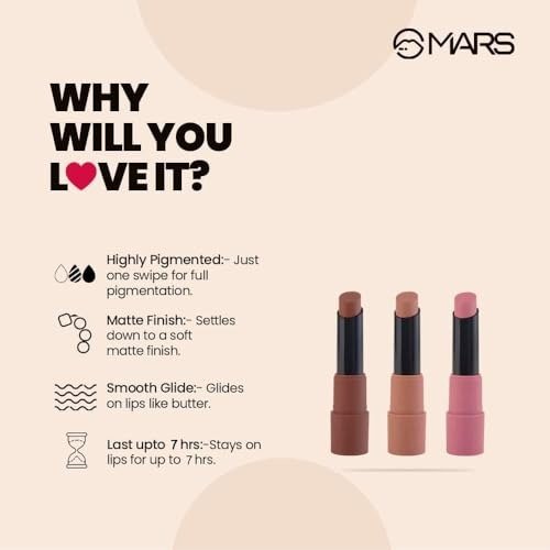 10 reviews for MARS PREMIUM Matte Box Set of 3 Lipsticks for Women | Long-Lasting | Smooth Finish | Moisturising | One Swipe Pigmentation (3×3.2 gm) (05-Blushed & Nudes)-SH7711 – Fast Shipping to USA & Canada
