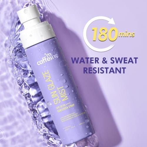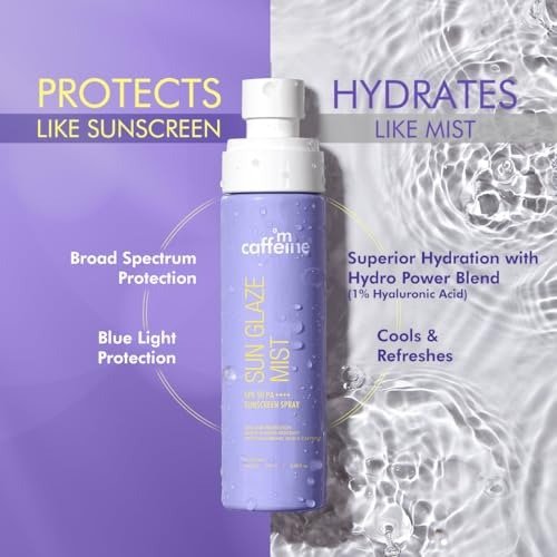 mCaffeine Sun Glaze Mist SPF 50 PA++++ Face Sunscreen Spray | 1% Hyaluronic Acid for Hydration| No White Cast | Easy Application Over Makeup & Quick Absorbing Sunscreen Spray | For All Skin Types – Fast Shipping to USA & Canada