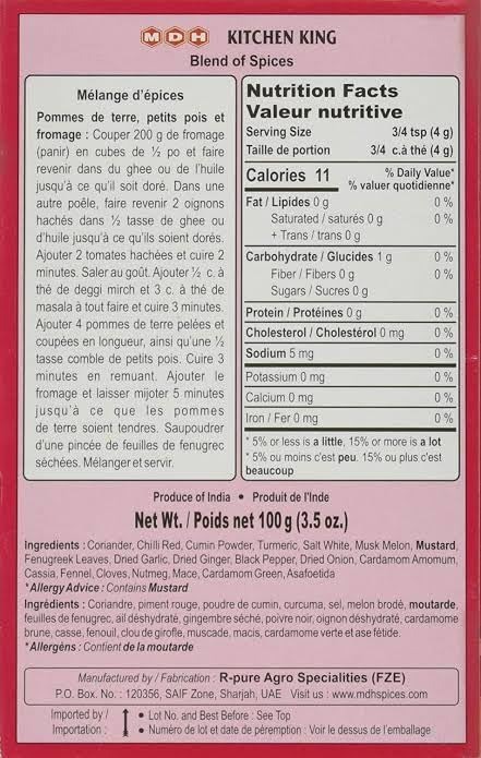 MDH Kitchen King Mixed Spices Powder, 100 grams.