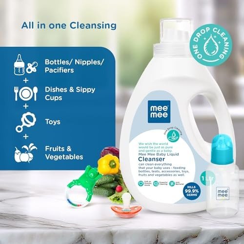 7 reviews for Mee Mee Baby Liquid Cleanser 1000ML Anti-Bacterial Kills 99.9% Germs | Cleanser for Baby Bottles, Nipples, Accessories, Toys, Fruits & Vegetables No Alcohol, One Drop Cleaning, Dermatologically Tested – Fast Shipping to USA & Canada