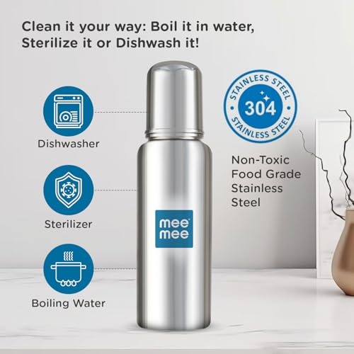 Mee Mee Baby Steel Feeding Bottle 250ml | Baby Milk Bottle with Advanced Anti Colic Valve, BPA Free, Soft Silicone Teat, Wide Neck for Babies/Infants/Newborns of 0-2 Years – Fast Shipping to USA & Canada
